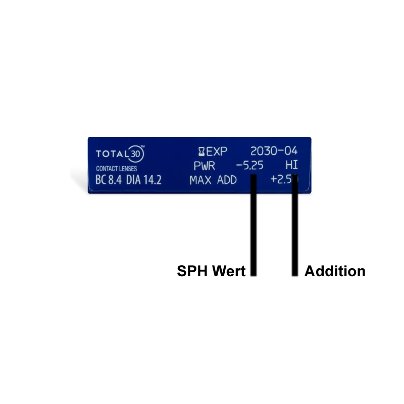 Es werden 3 verschiedene Nahzusätze bei der Total 30 Multifocal angeboten: LOW / MEDIUM / HIGH