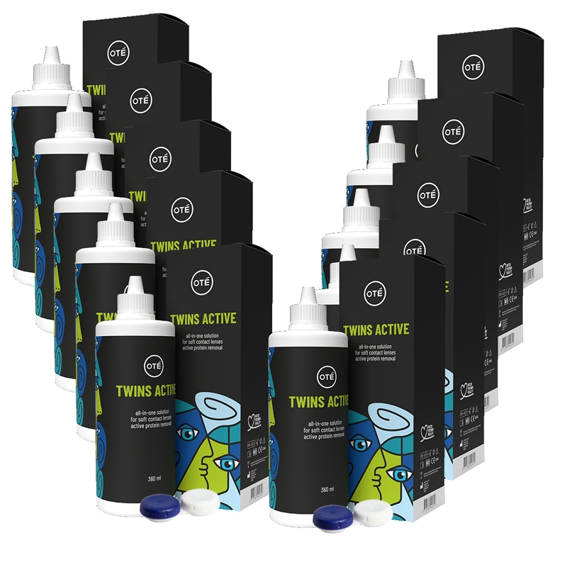 Oté Twins Active (Ote Twins Aktiv) ist eine No Rub Kombilösung die ohne Reiben reinigt und desinfiziert. Oté Twins Active enthält einen aktuven Fett- und Proteinentferner und dient als Lösung zum Aufbewahren, Desinfizieren, Reinigen sowie Einsetzen. Ote Twins Active entfernt Eieweiß- und Fettablagerungen bei weichen Kontaktlinsen.