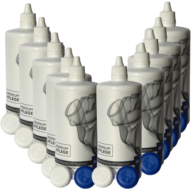Premium Pflege Kombilösung mit Hyaluron Mega Sparpack 10 x 360ml / 10 Behälter