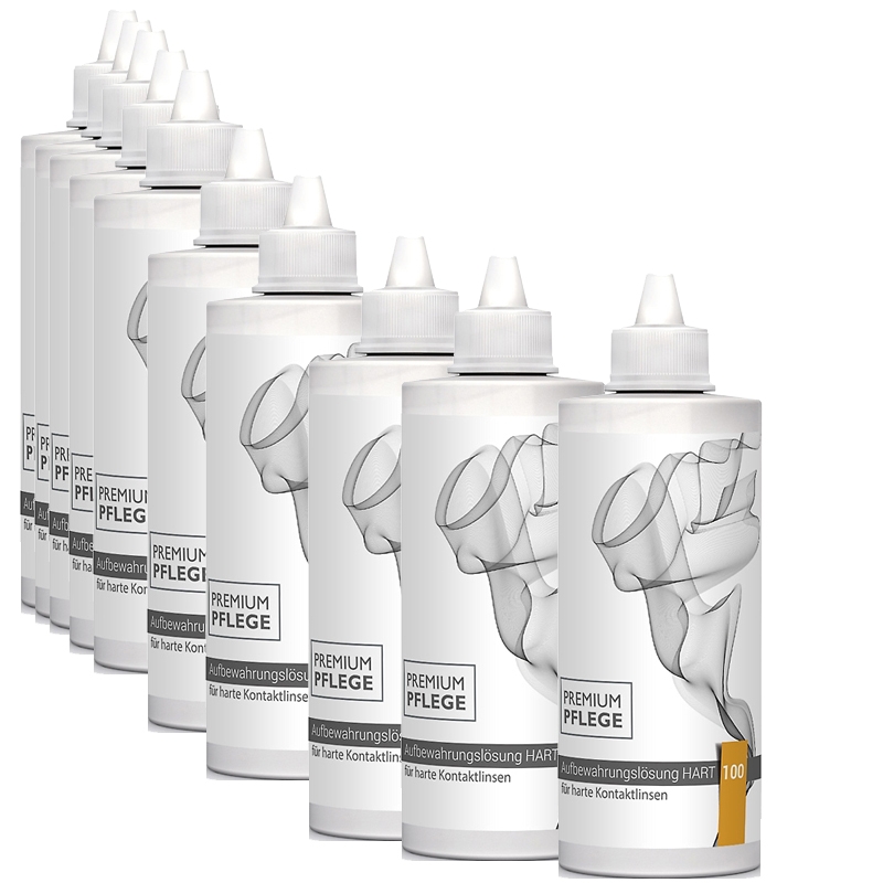 Aufbewahrungslösung mit geringer Viskosität zur Verwendung bei zur Verfettung neigenden Kontaktlinsen. Zusammen mit der Reinigungslösung "Premium Pflege - Reiniger HART" ergibt dies ein modernes Pflegesystem, das auf die Anforderungen hoch gasdurchlässiger formstabiler Kontaktlinsen perfekt abgestimmt ist.