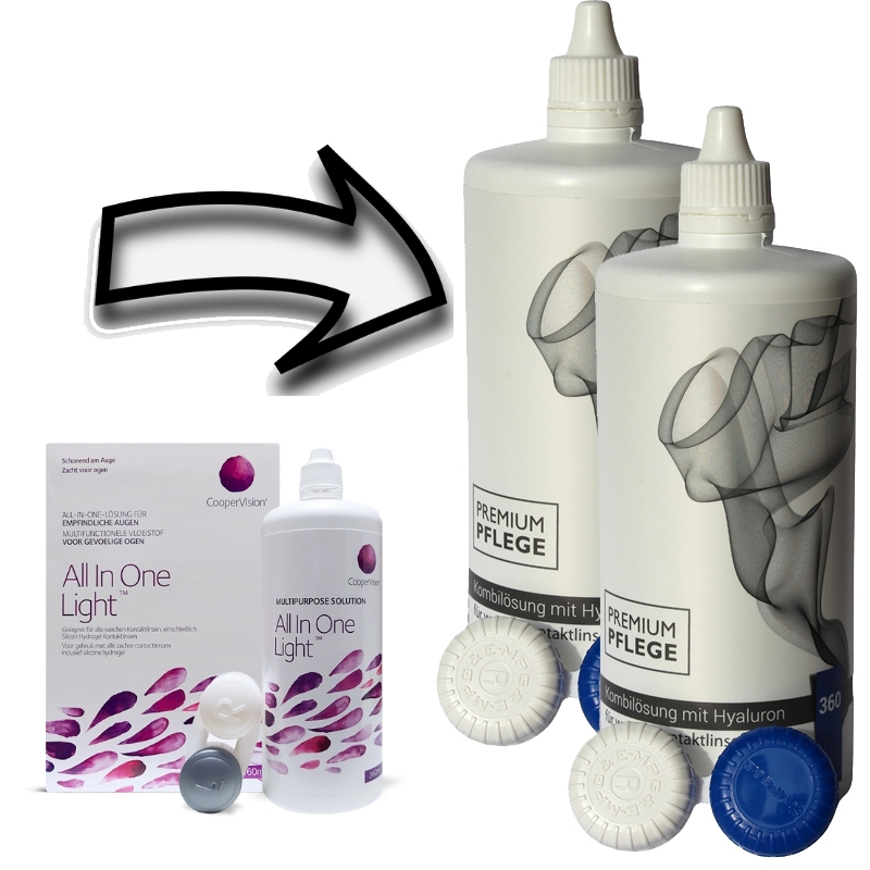 Aus All In One Light 2x360ml wird Premium Pflege Kombilösung mit Hyaluron 2x360ml