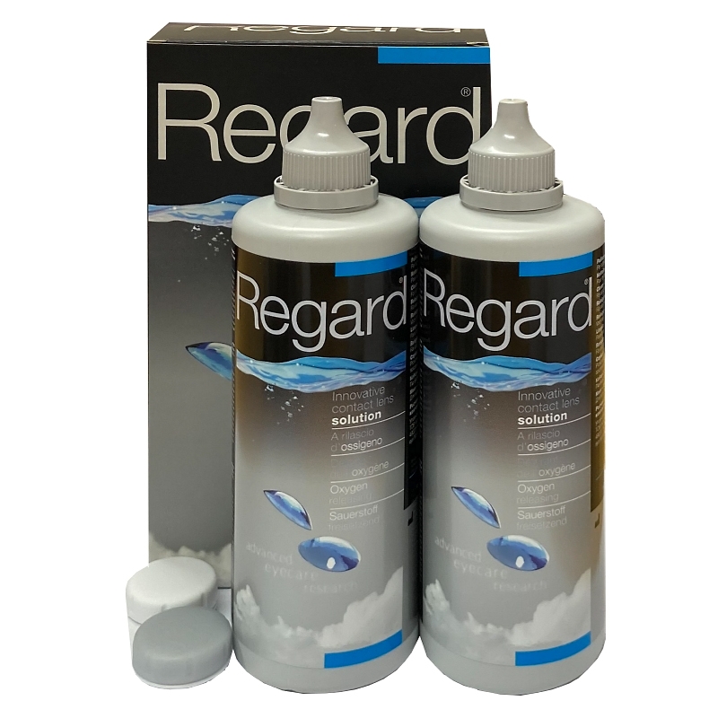 Regard ist eine herrausragende Innovation bei den Pflegemitteln von weichen Kontaktlinsen. Regard steigert nicht nur spürbar den Komfort beim Tragen Ihrer Kontaktlinsen, sondern reinigt diese auch besonders hygienisch. In dem Pflegemittel Regard sind aktive Desinfektionsmittel enthalten, den sogenannten OxyChlorite-Komplex. Diese werden während der Desinfektion der Kontaktlinsen in die natürlichen Bestandteile des Tränenfilms (Salz und Wasser) zerlegt und dabei wird Sauerstoff freisetzt.