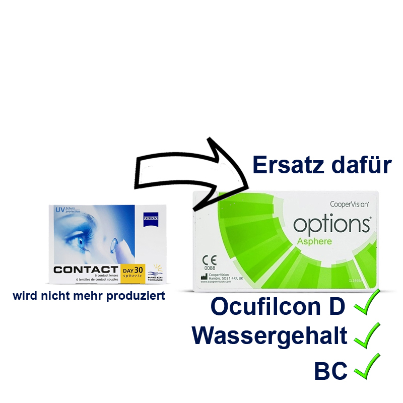Ersatz für Zeiss Contact Day 30 Spheric. Options Asphere Monatslinsen mit den selben Parametern