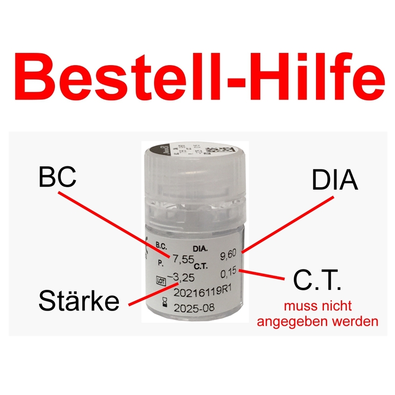 Hinweis: Bitte beachten Sie, dass das Widerrufsrecht bei Bestellung dieser Linse ausgeschlossen ist (außer bei einem Qualitätsmangel), da es sich um eine Spezialanfertigung handelt. Bestellen Sie also nur, wenn Sie genau diesen Linsentyp bereits mit Erfolg tragen.