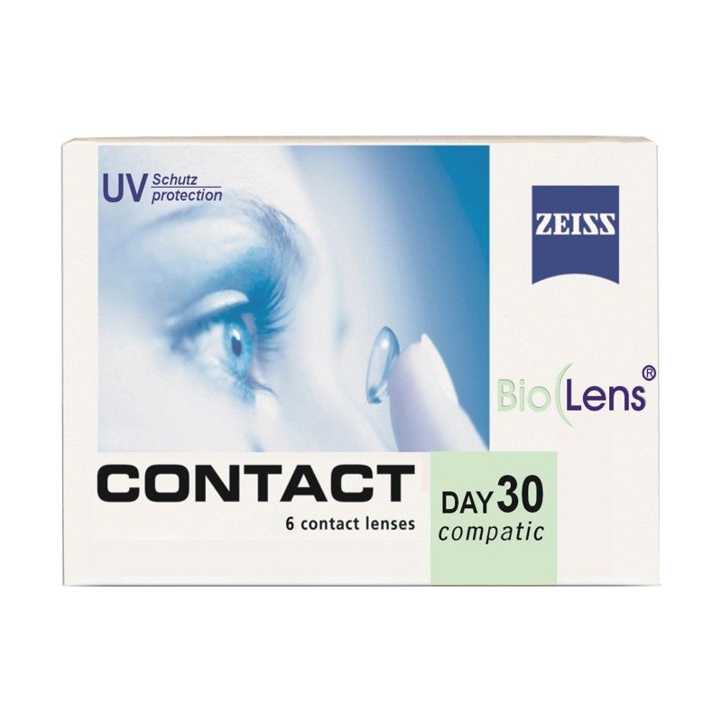 Zeiss Contact Day 30 compatic spheric Biokompatible Monatslinse mit leichter Grüntönung zur besseren Handhabung und UV-Schutz. Gut für trockene Augen geeignet. Dieser Linsentyp wird in zwei Durchmessern angeboten.